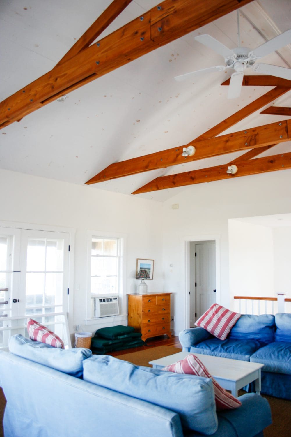 nantucket-builder-twig-perkins-wauwinet-3 February 7, 2017 by lizajuse Leave a Comment Ceiling and exposed beams in living room inside of Wauwinet property designed and built by Twig Perkins Inc. in Nantucket, Massachusetts.